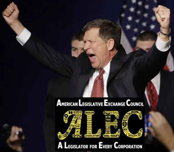 Kasich’s ALEC handbook includes the destruction of public education. Since taking office, Kasich has cut more than half a billion dollars from public education in Ohio. He also has failed to change the unconstitutional funding formula for the state’s K-12 school system. He increased charter school funding by $57 million, in particular, rewarding White Hat Management that runs many of Ohio’s charter schools and whose owner is a big Republican donor.