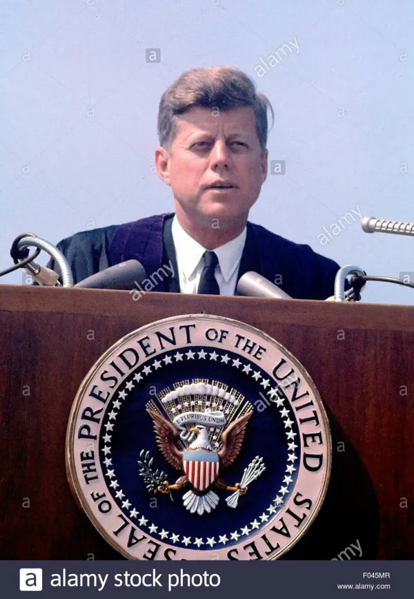 “Let us reexamine our attitude toward the cold war, remembering that we are not engaged in a debate, seeking to pile up debating points. We are not here distributing blame or pointing the finger of judgment. We must deal with the world as it is, and not as it might have been had the history of the last 18 years been different. We must, therefore, persevere in the search for peace in the hope that constructive changes within the Communist bloc might bring within reach solutions which now seem beyond us. We must conduct our affairs in such a way that it becomes in the Communists’ interest to agree on a genuine peace. Above all, while defending our own vital interests, nuclear powers must avert those confrontations which bring an adversary to a choice of either a humiliating retreat or a nuclear war. To adopt that kind of course in the nuclear age would be evidence only of the bankruptcy of our policy–or of a collective death-wish for the world.”
