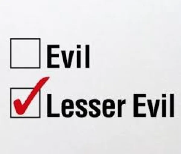 If your friend sticks to his or her lesser evilism, try this. Consider an election between a candidate who proposes immediate nuclear war and a candidate who proposes immediate nuclear war and encourages everyone to commit vicious crimes before the world ends. One is more evil and the other less evil. But both will quickly destroy all human life. Would you campaign and vote for the less evil one?
