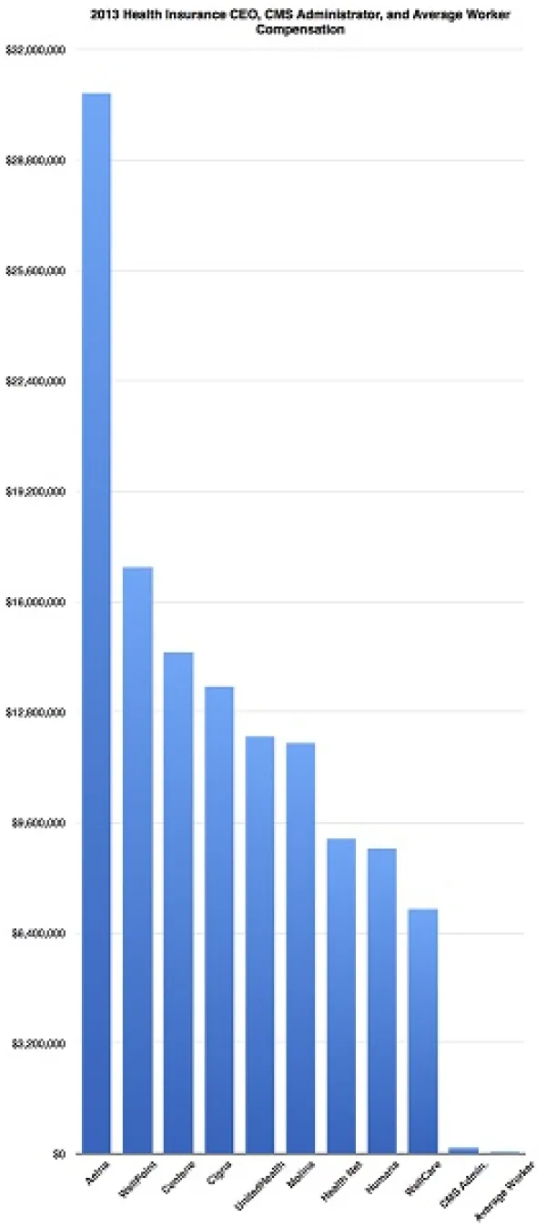 Philadelphia, PA - May 1, 2014 - Chief executive officers at Fortune 500 health insurance companies, who have opposed new regulations under the Affordable Care Act, emerged this month as one of the ACA's greatest beneficiaries. Recently filed financial reports show that average compensation for these top nine health insurance CEOs rose by more than 19 percent in 2013, while several of the nation’s largest insurers more than doubled CEO pay.