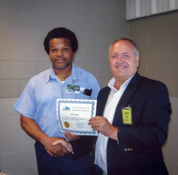 Lagway came to the attention of the Free Press in 2011 when he and fellow inmate Tony Simmons were chosen to be the only two “master trainers” of an environmental literacy curriculum “Roots of Success,” introduced in the Ohio prison system. The program was created by Dr. Raquel Pinderhughes, a professor at San Francisco State University. As Pinderhughes explains it, the program “is used in prisons and juvenile justice facilities throughout the U.S. to reduce costs by reducing energy, waste and water use in correctional facilities and, prepare inmates for employment upon their release into the community.”