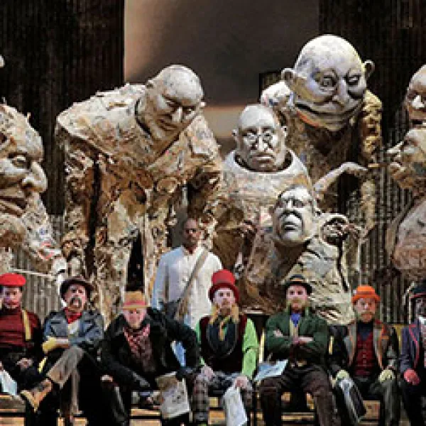 Conductor Grant Gershon, director Phelim McDermott (ironically, he’s English!) and costume designer Kevin Pollard do yeoman work in bringing this spectacle to the stage, with its cast of dozens. There is some puppetry provided by another Englishman, Rob Thirtle, and 59 Productions renders the video design. In particular, if I was wearing a hat I’d take it off to scenery designer Julian Crouch, for his extremely imaginative, even visionary sets, which some of the performers literally fly across in some of the live stage’s best aeronautics since Mary Martin blasted off in her Tony-winning role as the boy who refused to grow up in the 1954 Broadway production of Peter Pan.