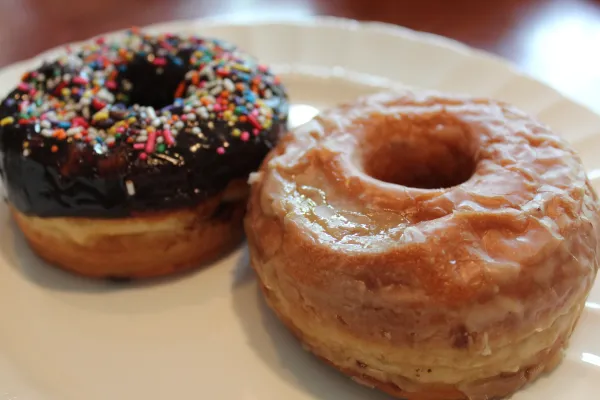 Pictured: One Line Coffee with almond milk and Destination Donuts maple and chocolate with sprinkles.