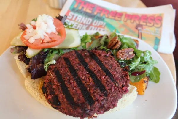 Pictured: Veganized Northstar Burger with a winter vegetable salad (Photo by Eriyah Flynn)