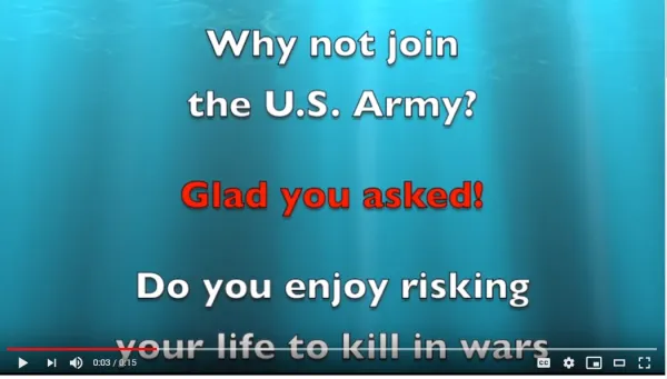 A Global Security System: An Alternative to War (AGSS) relies on three broad strategies for humanity to end war: 1) demilitarizing security, 2) managing conflicts without violence, and 3) creating a culture of peace. These are the interrelated components of our system: the frameworks, processes, tools and institutions necessary for dismantling the war machine and replacing it with a peace system that will provide a more assured common security. More info.What the U.S. Army claims doesn’t match reality: