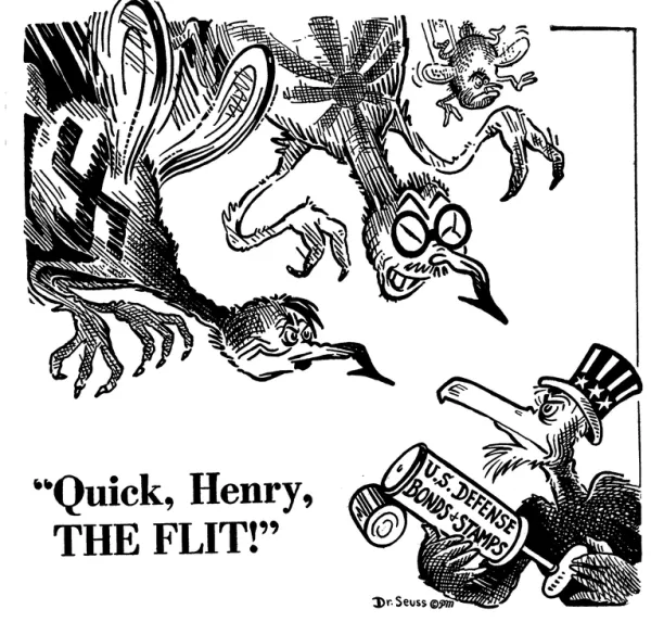 War propagandists made killing easier by depicting foreign people as bugs. Insecticide marketers made buying their poisons patriotic by using war language to describe the "annihilation" of "invading" insects (never mind who was actually here first). DDT was made available for public purchase five days before the U.S. dropped the bomb on Hiroshima. On the first anniversary of the bomb, a full-page photograph of a mushroom cloud appeared in an advertisement for DDT.