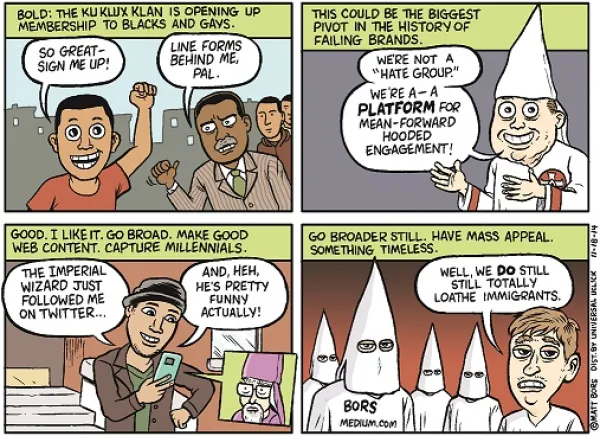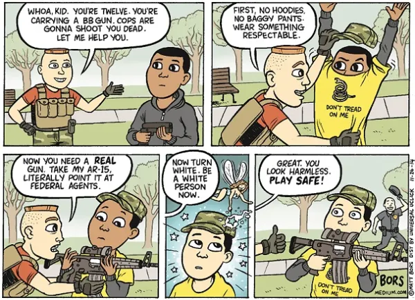 Meanwhile, gun sales at local shops are through the roof and the local Klan is stirring, distributing fliers warning protesters that they’ve awakened a sleeping giant.