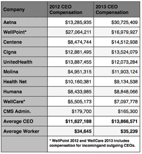 HEALTH INSURANCE CEO PAY SKY-ROCKETS IN 2013